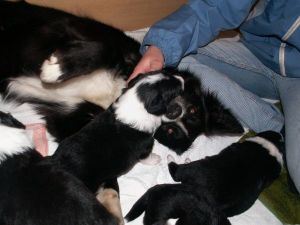 12. Oktober 2012 Amidala ist zum zweiten Mal Mutti, unser E-Wurf ist geboren, es sind 3 Rüden und 3 Hündinnen, alle schwarz-weiß |