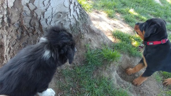 Und Ida kann prima Baumstämme laufen und Ivy trainiert schon