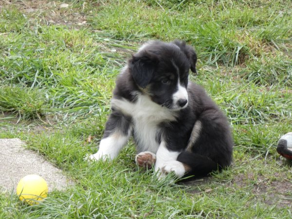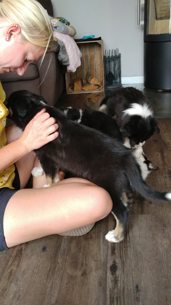 1 Rüde tricolor, 2 Hündinnen schwarz-weiß Herzlich